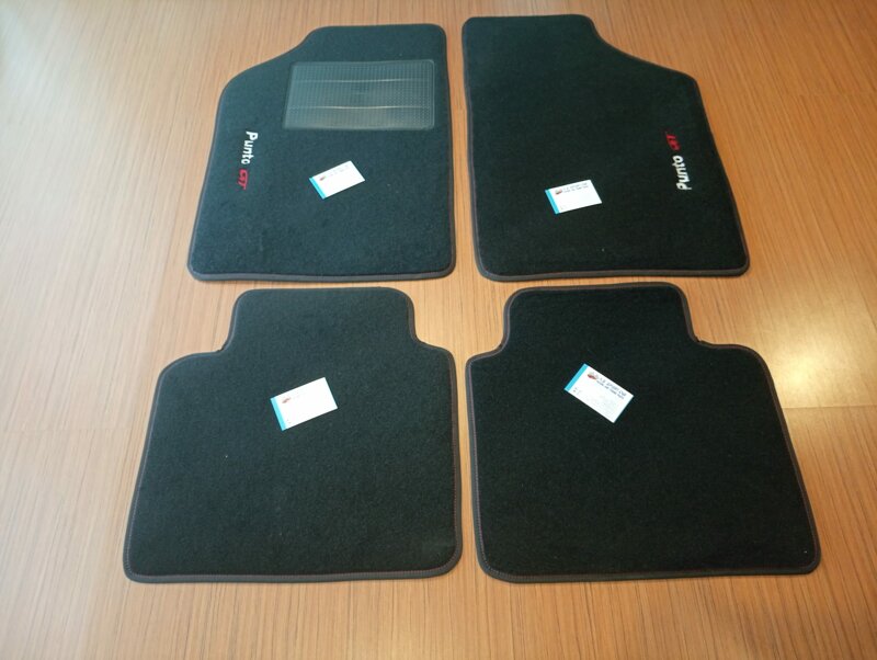 set tappeti fiat punto gt con 2 scritte bicolore o colore a piacere, bordi e cuciture neri o colore a piacere